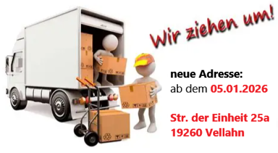 neuen Firmensitz in der Straße der Einheit 25 a in 19260 Vellahn oder über die